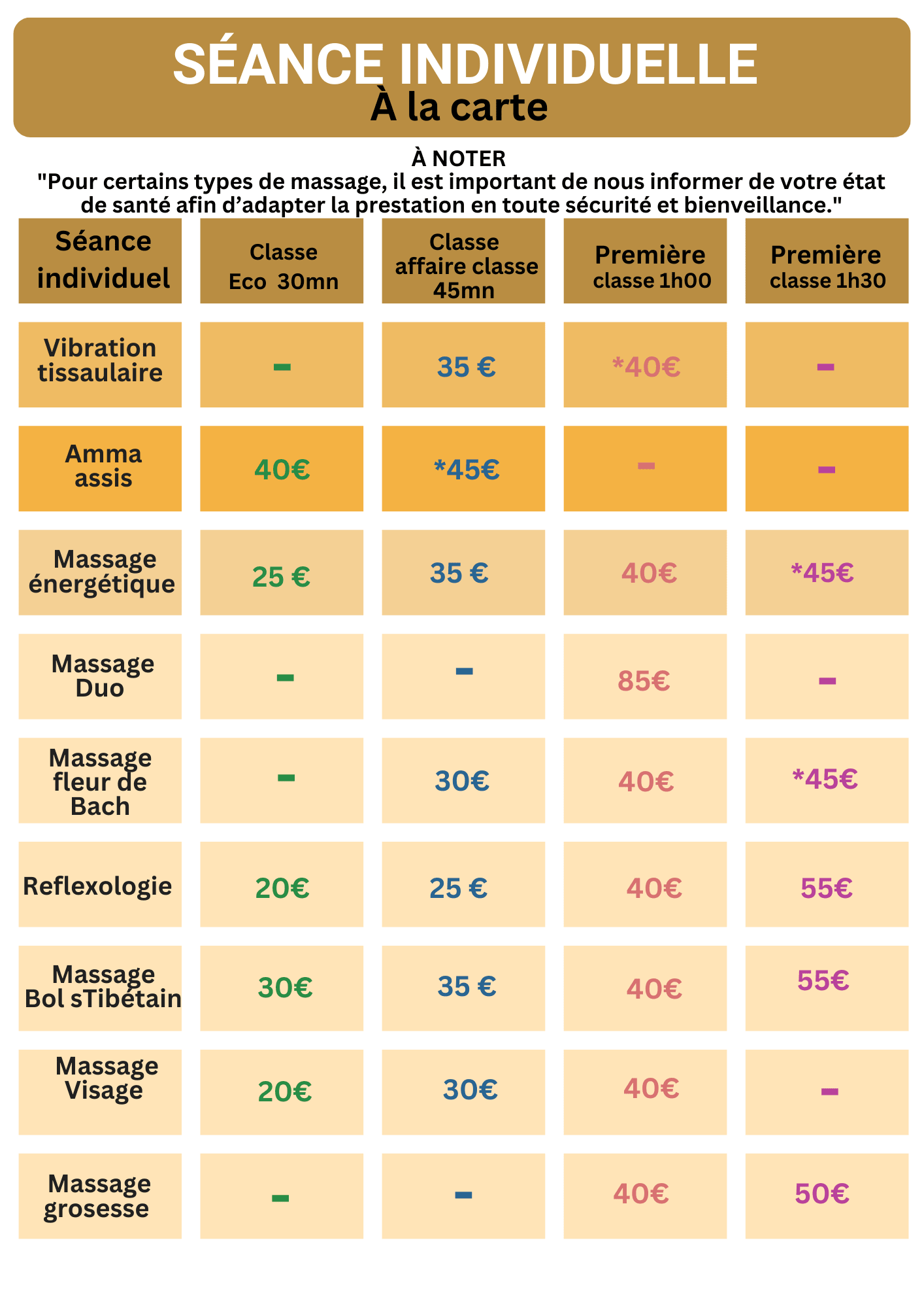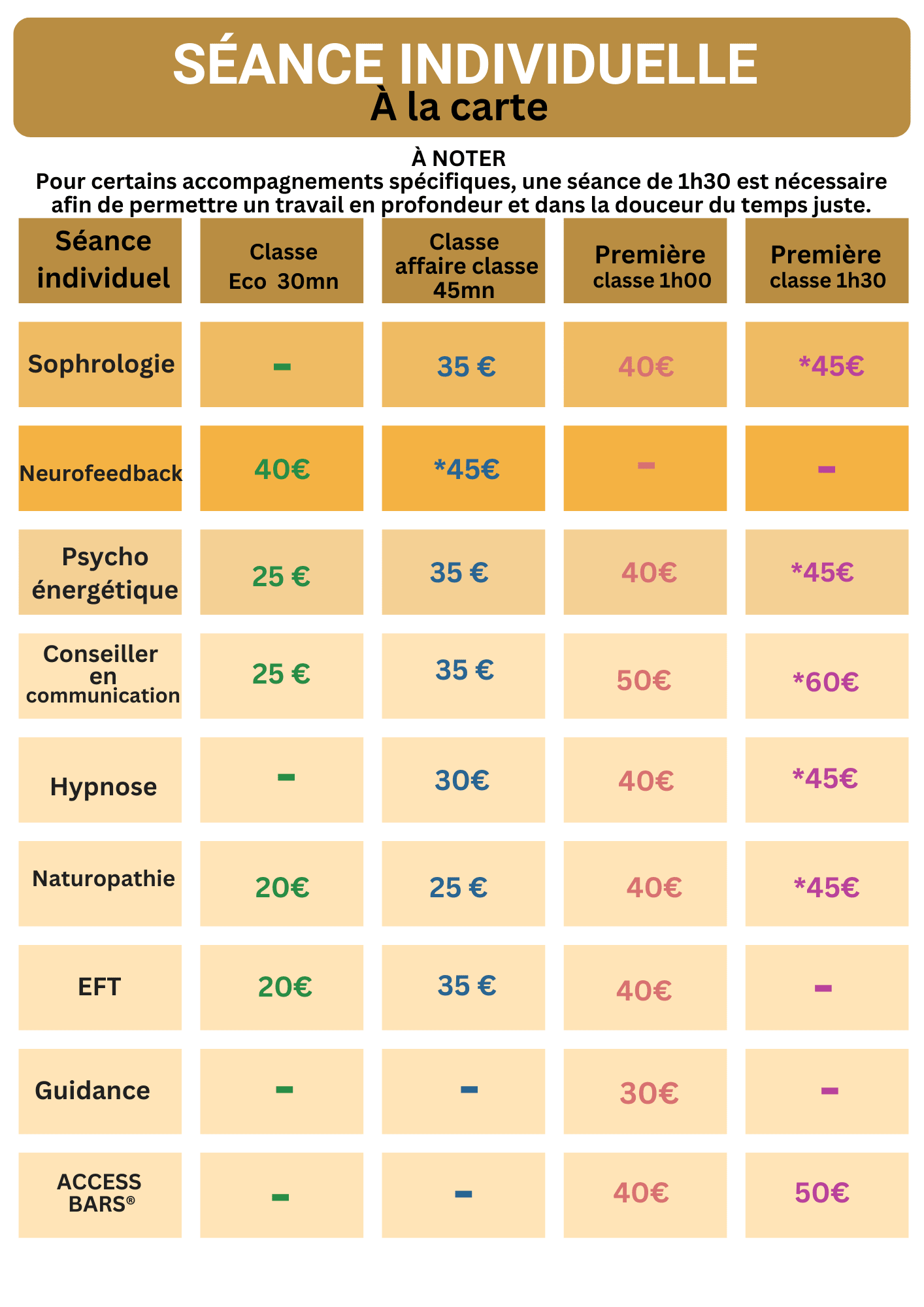 Comme un itinéraire personnel, chaque séance individuelle est une escale unique sur votre chemin de vie. Selon vos besoins, vous choisissez la durée de votre voyage et la destination intérieure qui vous appelle : sophrologie, hypnose, guidance, massages et bien d’autres approches encore.